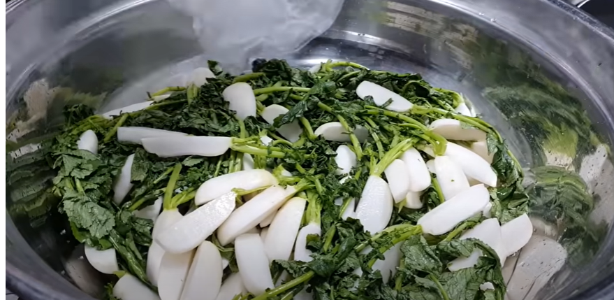 - 무에 양념 버무리기 : 양념이 잘 섞인 후, 절인 무에 양념을 골고루 발라줍니다. 이때, 대파를 송송 썰어 함께 넣어주면 더욱 맛있습니다.