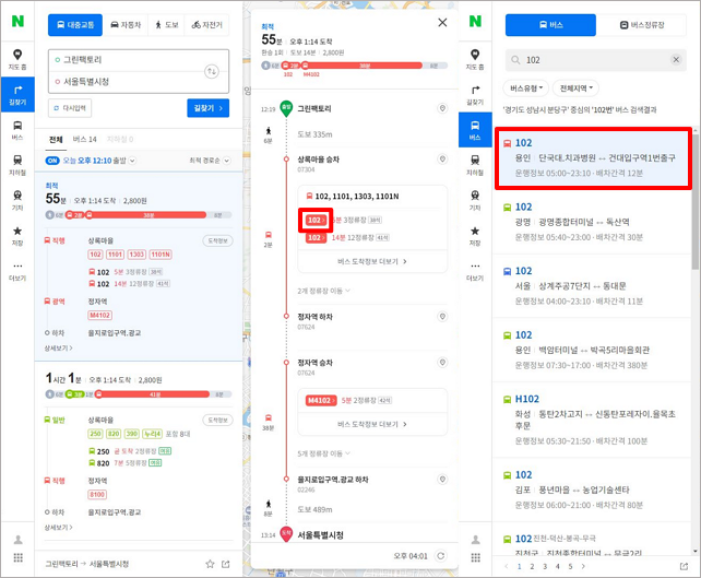네이버 길 찾기 대중교통 사용법