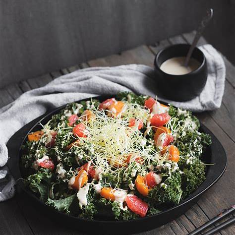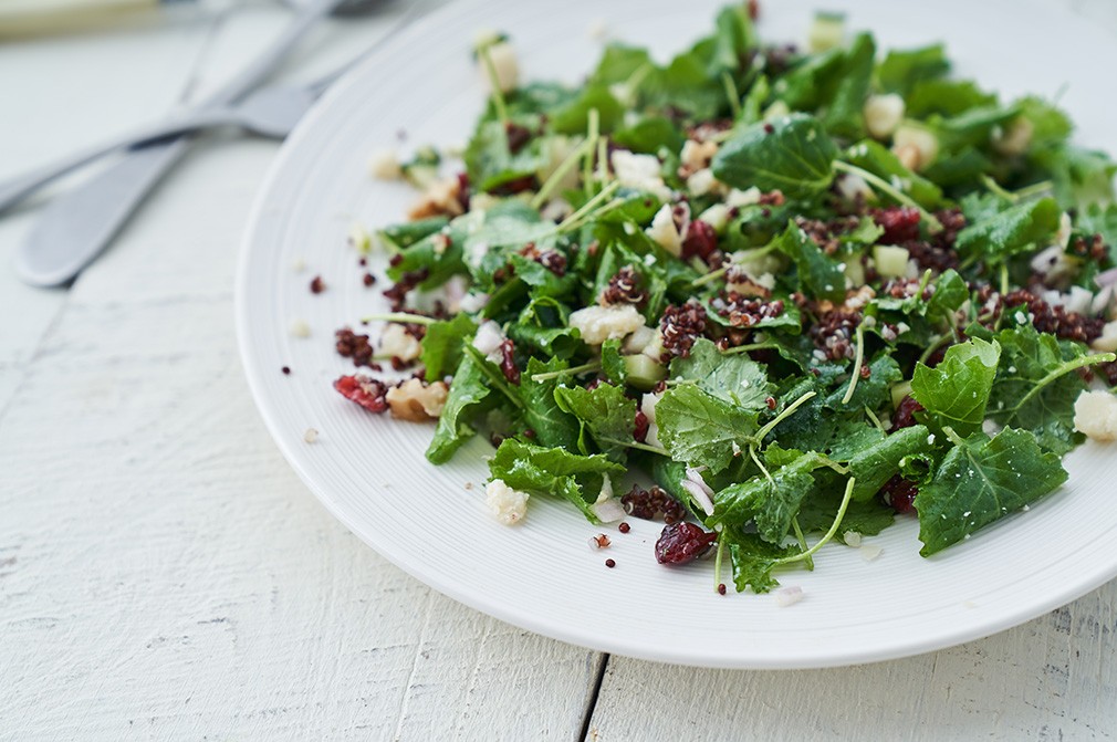 잎줄기 제거 → 물기 제거 → 올리브오일과 레몬즙으로 버무리면 부드러운 샐러드 완성