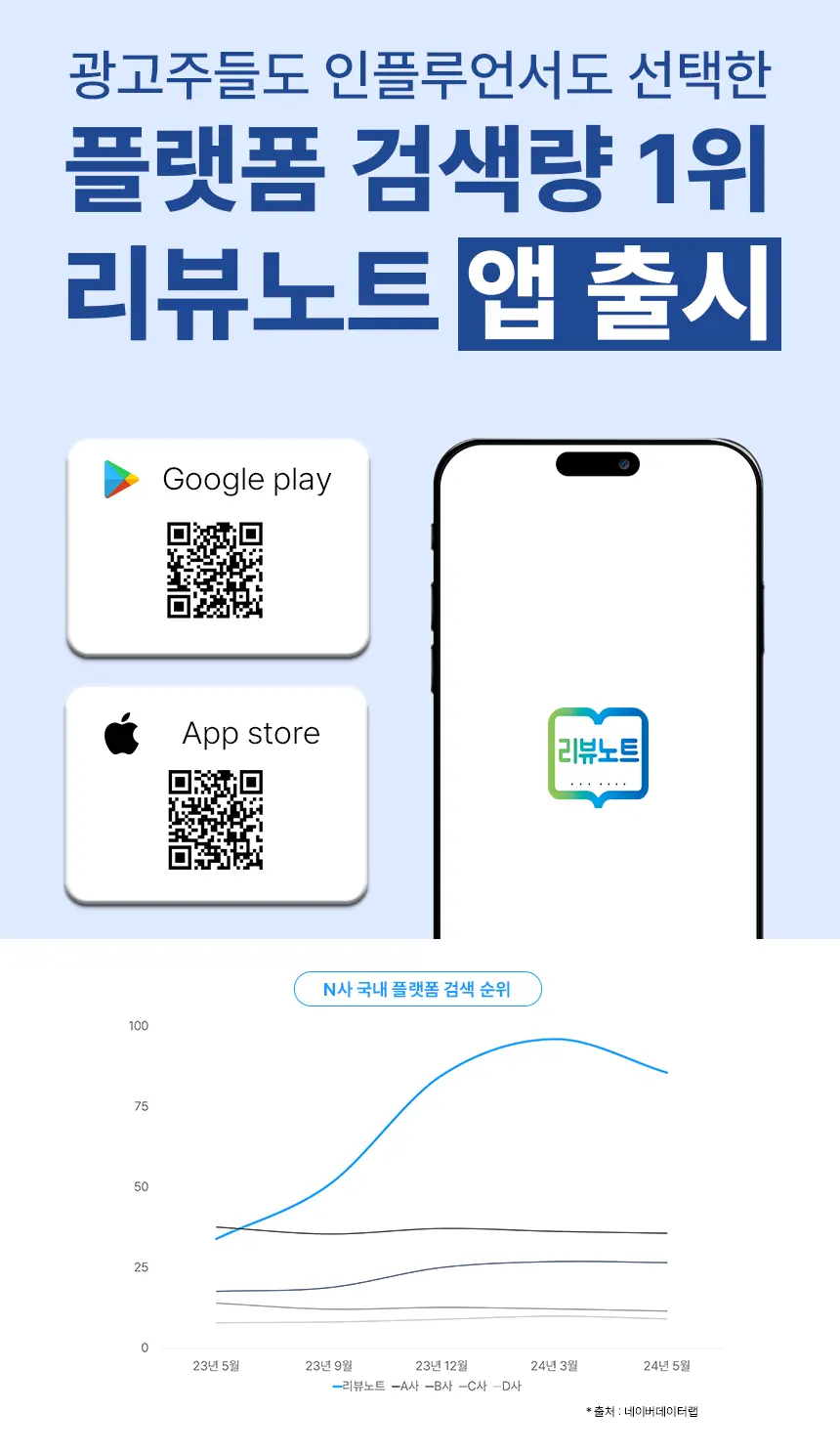 리뷰노트는 출시 후 7개월 만에 네이버 검색량 65만을 기록하며 빠르게 성장하고 있습니다. 이는 많은 사용자들이 이 플랫폼을 통해 체험단 활동을 하고 있으며, 광고주와 인플루언서 간의 신뢰를 바탕으로 한 상호 이익 구조가 성공적으로 자리 잡았기 때문입니다. 또한, 신뢰성 있는 후기를 바탕으로 한 마케팅 전략이 성공적으로 작용하면서, 앞으로도 리뷰노트의 성장이 기대됩니다.