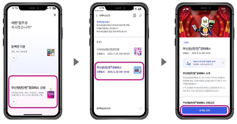 ‘부산 오너라 청년패스’ 메뉴 클릭