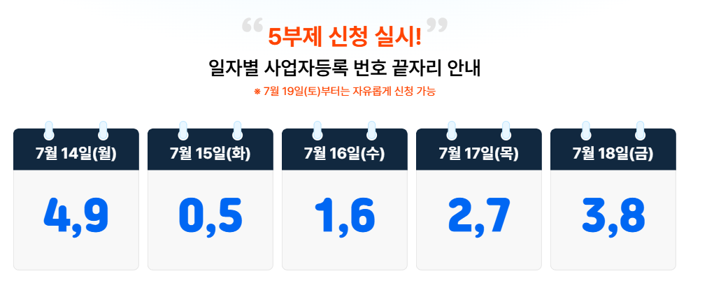 - 신청 초기에는 5부제(사업자등록번호 끝자리 기준) 적용