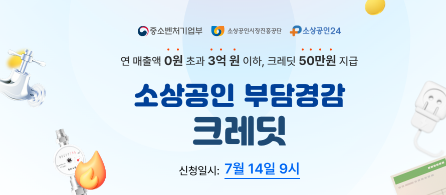 국가가 지원하는 소상공인 전용 가지로 원대 최대 50만 원 크레리드(바운체)를 제공하는 제목입니다. 이는 전기, 가스, 수도 등 공간금 및 4대 보호료 등에서 자동으로 차감되는 방식으로 사용됩니다.