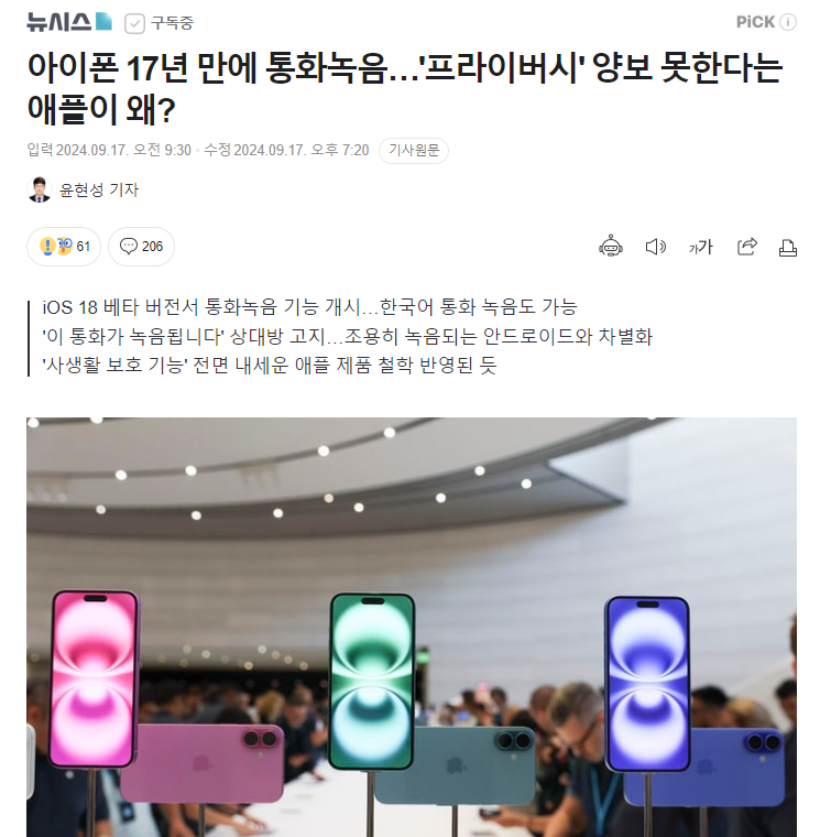 아이폰의 iOS 18.1 업데이트로 통화 녹음 기능이 공식 지원됩니다. 고음질 녹음과 AI 요약, 한국어 전사 기능까지 갖춘 이 기능은 통화 내용을 효과적으로 기록할 수 있는 새로운 옵션을 제공합니다. 다만, 상대방에게 자동으로 녹음 사실을 고지하는 점은 사용자에 따라 장단점이 될 수 있습니다.