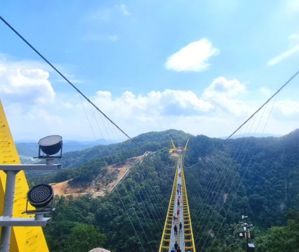 높이 150cm, 길이 200m의 출렁다리입니다.