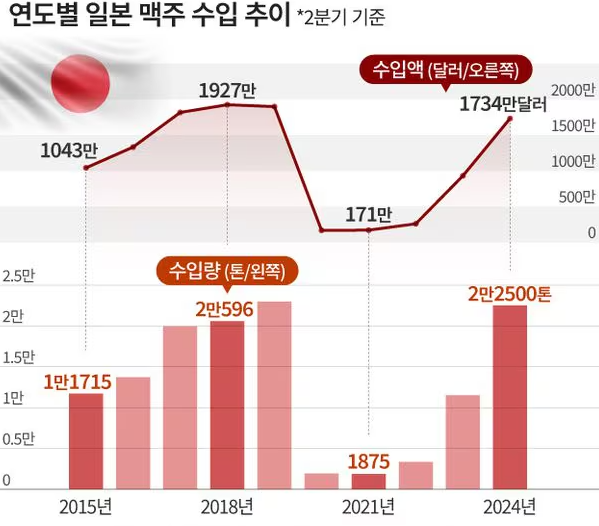 일본 맥주의 수입 통계는 그 증가세를 명확히 보여주고 있습니다.
