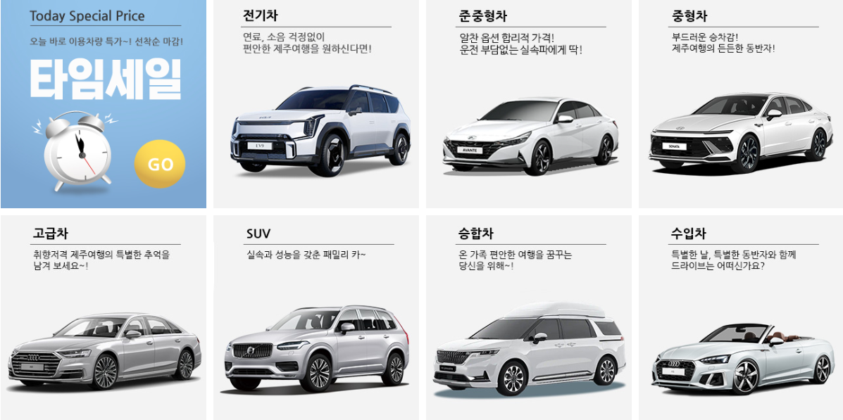 여*러 협력사의 렌터카를 비교하여 저렴하고 품질 좋은 차량을 대여할 수 있습니다. 렌터카 외에도
