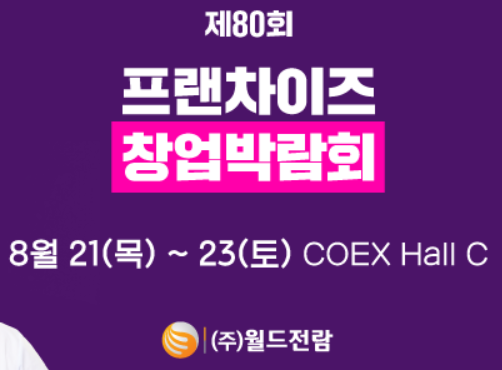 제80회 프랜차이즈 창업박람회 COEX 2025(8/21~23): 450여 부스·150개 브랜드·소자본창업 트렌드 총정리” 8월 21~23일 서울 COEX Hall C에서 개최되는 제80회 프랜차이즈 창업박람회. 450여 부스, 150개 프랜차이즈 브랜드와 창업컨설팅·세미나까지 한자리에서!