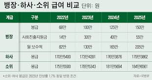 하사의 2025년 월급은 약 193만 3000원으로, 병사 급여보다는 적은 증가율이지만 안정적인 인상이 이루어집니다. 특히 부사관은 주거 지원, 의료비 보조, 가족 복지 혜택 등 다양한 복지 프로그램을 통해 안정적인 생활을 유지할 수 있습니다.