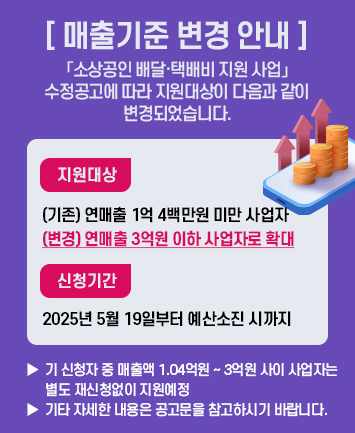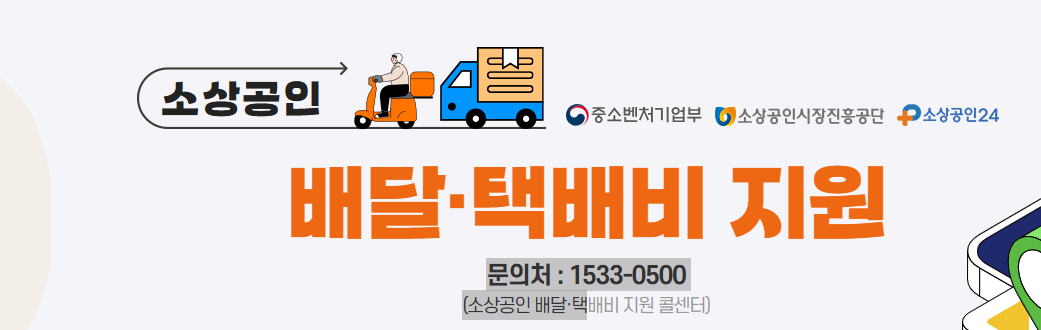 연매출 3억 원 이하의 소상공인을 대상으로 배달과 택배 비용을 최대 30만 원까지 지원합니다. 배달앱 수수료나 택배비로 고민하는 소상공인에게 실질적인 도움을 줍니다.