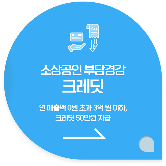 전기, 가스, 수도, 4대 보험 납부 시 사용할 수 있는 크레디트 50만 원을 지원합니다. 별도의 신청 절차 없이 조건에 맞는 소상공인은 자동으로 등록되어 지원을 받을 수 있습니다. 고정비 부담을 획기적으로 줄일 수 있는 정책입니다.