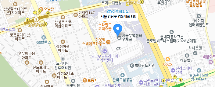 - 자차 방문 시 COEX 지하주차장 이용 (유료)
