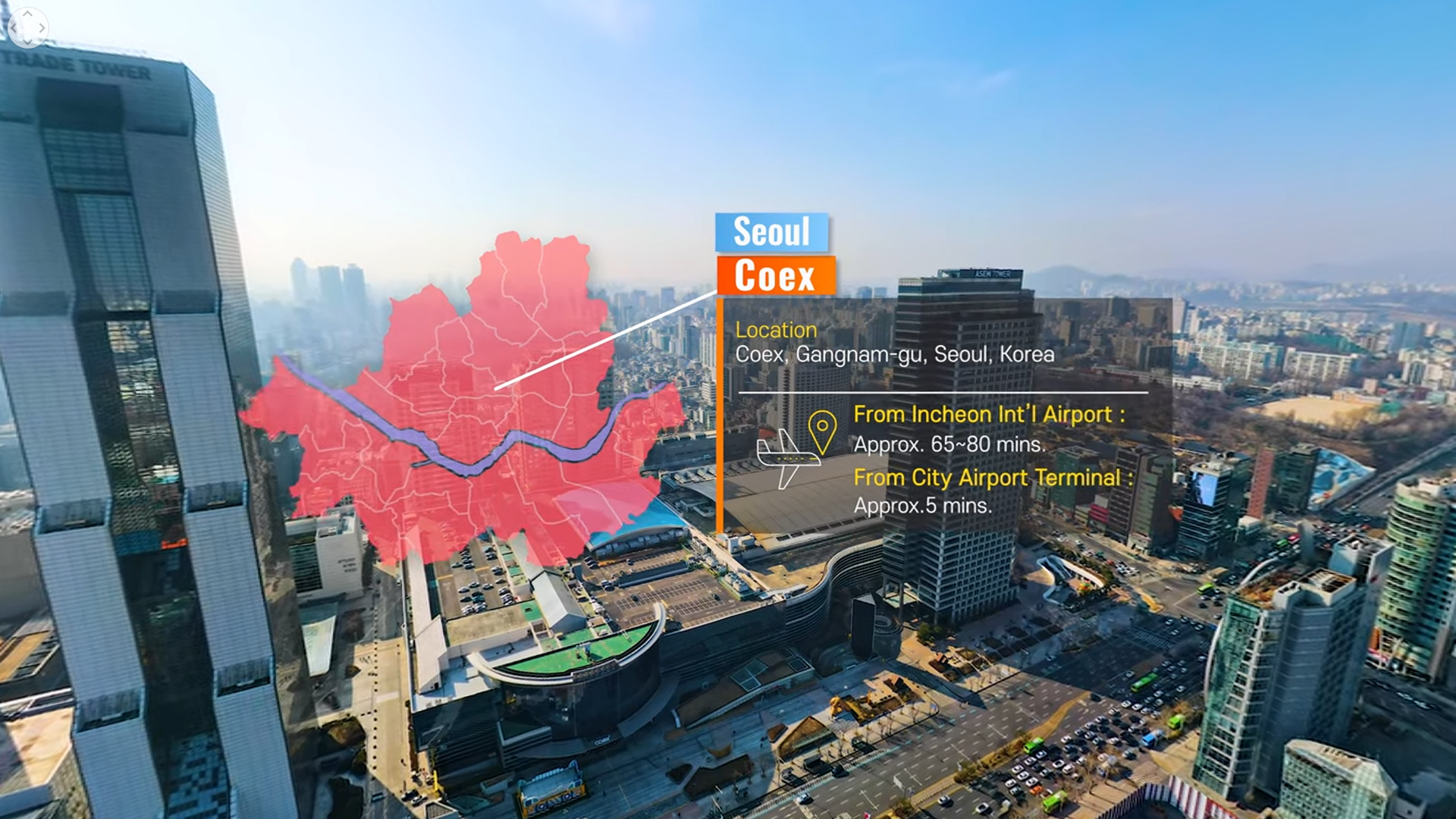 - 지하철 2호선 삼성역 5번 출구에서 COEX 몰로 연결되어 C홀까지 도보 5분 내 도착 가능